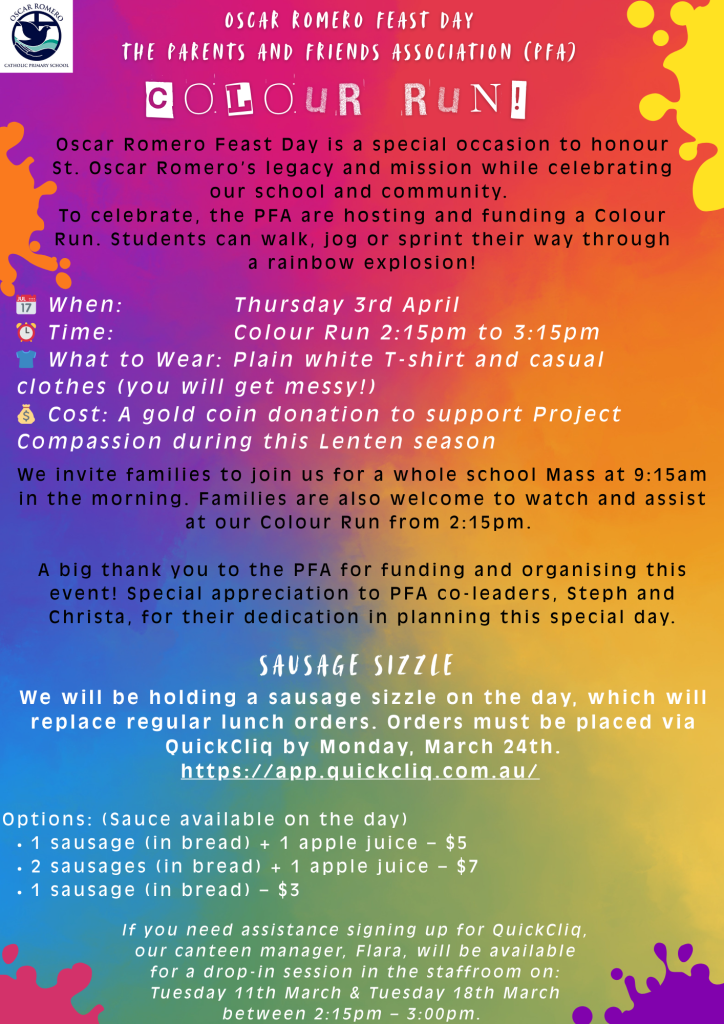 We’re pleased to introduce our PFA co-leaders, Christa and Steph. They stepped into the leadership role last year and have been working hard this term to organise both the Colour Run and Easter Raffle, as well as preparing for the Mother’s Day Stall early next term. Next term we’ll hold a PFA meeting which will be open to new members or those wanting to help out when needed.